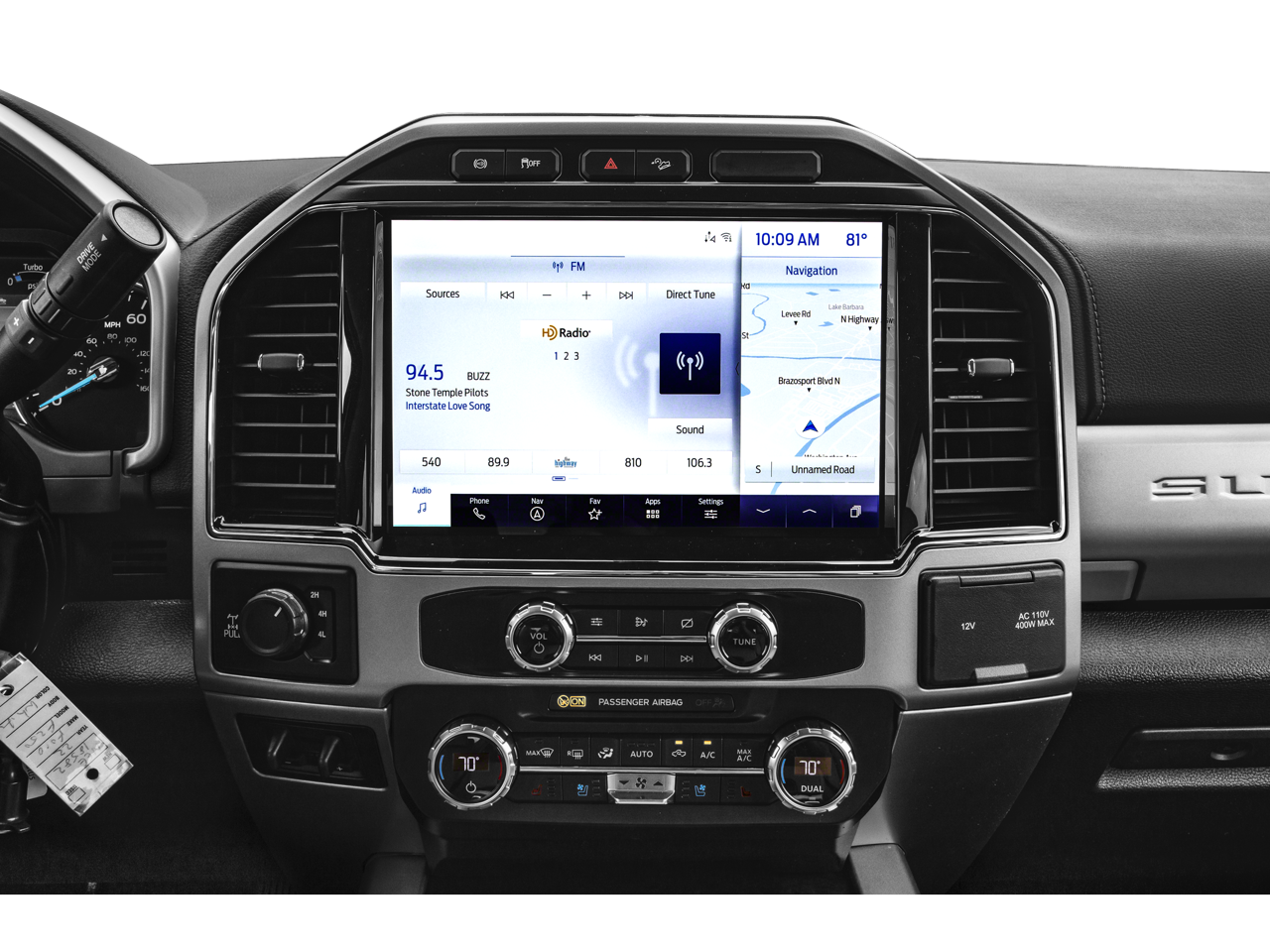Ford Certified, 4WD, 10 Speakers, 4-Wheel Disc Brakes, ABS brakes, Adjustable pedals, Advanced Security Pack Inclination Sensor Removal, Air Conditioning, All-Weather Floor Mats, Alloy wheels, AM/FM radio: SiriusXM with 360L, Ambient Lighting - Fixed Color, Auto High-beam Headlights, Auto-dimming Rear-View mirror, Automatic temperature control, Body-Color Exterior Mirrors, Body-Color Front & Rear Bumpers, Brake assist, Bumpers: chrome, Chrome Exhaust Tip, Compass, Delay-off headlights, Driver door bin, Driver vanity mirror, Dual front impact airbags, Dual front side impact airbags, Easy Entry®/Exit Memory Driver's Seat Feature, Electronic Stability Control, Emergency communication system: SYNC 4 911 Assist, Exterior Parking Camera Rear, Flow-Through Console, Front anti-roll bar, Front Bucket Seats, Front Center Armrest, Front dual zone A/C, Front fog lights, Front Leather Seating Surfaces 40/Console/40, Front reading lights, Fully automatic headlights, GVWR: 10,000 lb Payload Package, Heated door mirrors, Illuminated entry, Intelligent Access w/Push-Button Start, Lariat Sport Appearance Package, Lariat Ultimate Package, Leather steering wheel, LED Box Lighting, LED Roof Clearance Lights, Low tire pressure warning, Memory Power-Adjustable Pedals, Navigation system: Connected Navigation, Order Code 608A, Outside temperature display, Overhead airbag, Overhead console, Painted Body-Color Grille, Panic alarm, Passenger door bin, Passenger vanity mirror, Platform Running Boards, Power door mirrors, Power driver seat, Power Heated/Ventilated Driver Seat w/Memory, Power Heated/Ventilated Passenger Seat, Power passenger seat, Power steering, Power Telescoping/Tilt Steering Wheel/Column, Power windows, PowerScope Trailer Tow Mirrors w/Heat, PowerScope Trailer Tow Mirrors w/Memory, Quad Beam LED Headlamps & LED Taillamps, Radio data system, Radio: B&O Sound System by Bang & Olufsen, Rear Parking Sensors, Rear reading lights, Rear seat center armrest, Rear step bumper, Rear window defroster, Remote keyless entry, Remote Start System, Remote Tailgate Release, Security system, SiriusXM Radio w/360L, Speed control, Split folding rear seat, Steering wheel mounted audio controls, SYNC 4 w/Enhanced Voice Recognition, Tachometer, Tailgate Step & Handle, Telescoping steering wheel, Tilt steering wheel, Traction control, Trip computer, Turn signal indicator mirrors, Twin Panel Power Moonroof, Unique Sport 4x4 Box Decal, Upfitter Switches (6), Variably intermittent wipers, Wheels: 18 Bright Machined Cast Aluminum, 4WD.