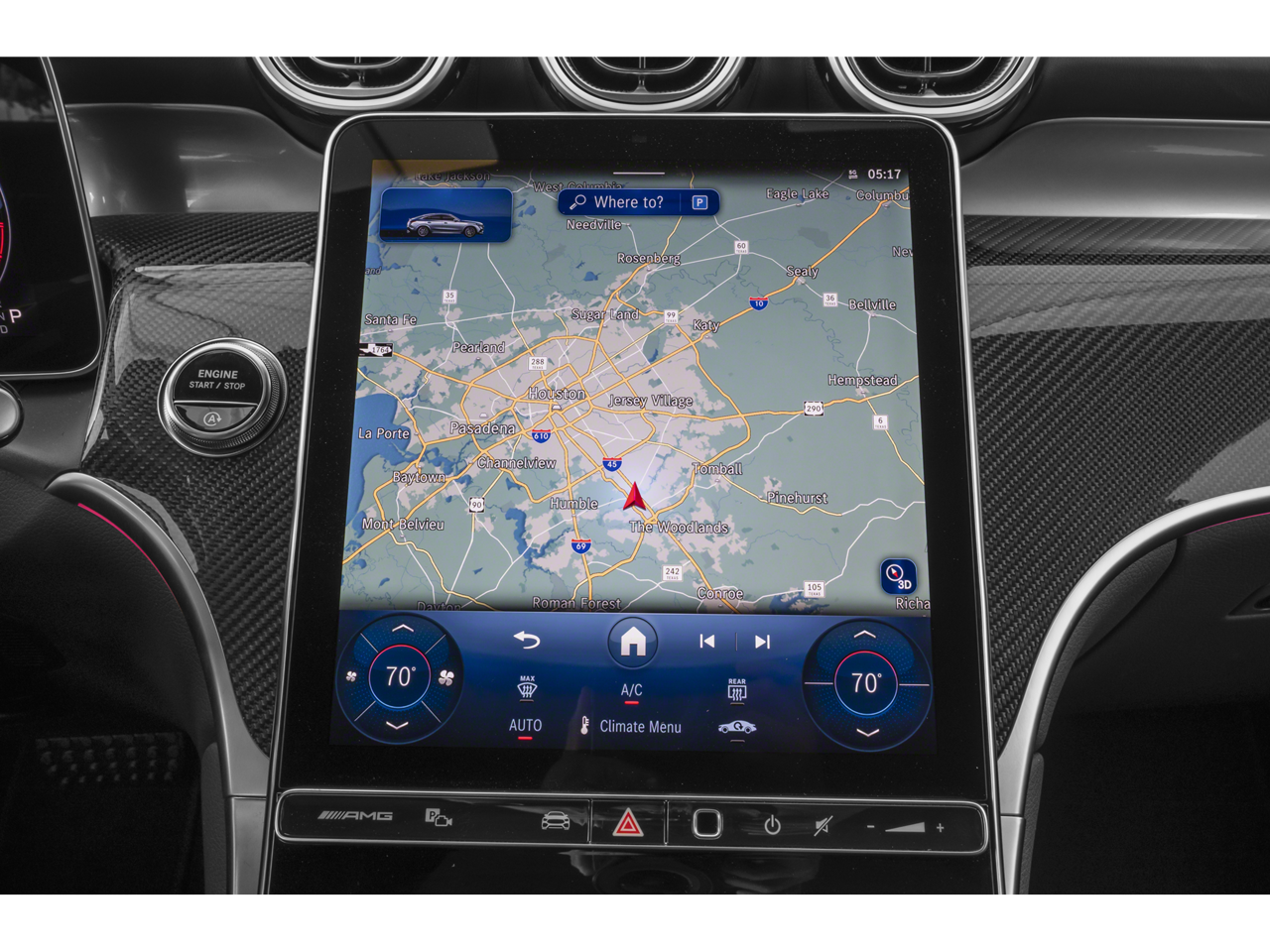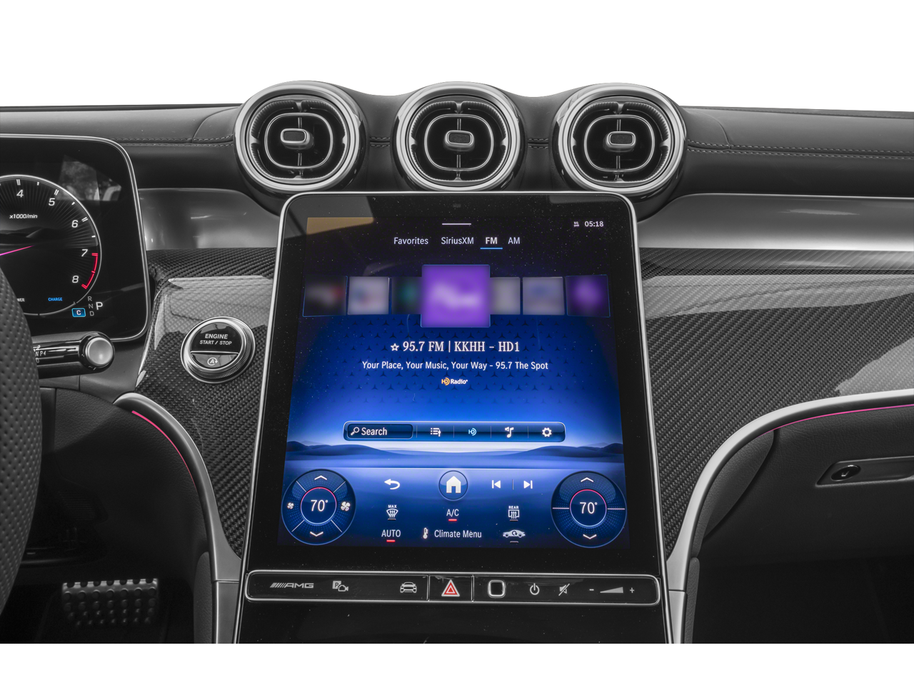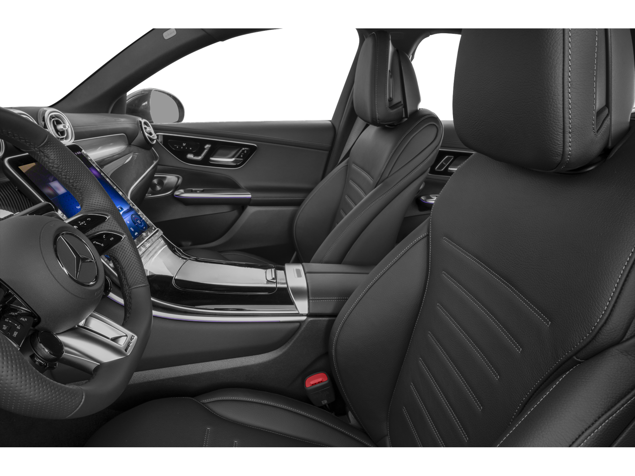 11.9 Center Touchscreen Display, 4-Wheel Disc Brakes, 8 Speakers, ABS brakes, Adaptive suspension, Air Conditioning, Alloy wheels, AM/FM radio: SiriusXM, Apple CarPlay®/Android Auto®, Auto High-beam Headlights, Auto tilt-away steering wheel, Auto-dimming door mirrors, Auto-dimming Rear-View mirror, Auto-leveling suspension, Automatic temperature control, Brake assist, Bumpers: body-color, Child-Seat-Sensing Airbag, Compass, Delay-off headlights, Driver door bin, Driver vanity mirror, Dual front impact airbags, Dual front side impact airbags, Electronic Stability Control, Emergency communication system: eCall Emergency System, Exterior Parking Camera Rear, Four wheel independent suspension, Front anti-roll bar, Front Bucket Seats, Front Center Armrest, Front dual zone A/C, Front reading lights, Fully automatic headlights, Garage door transmitter: HomeLink, Genuine wood dashboard insert, Head restraints memory, Heated door mirrors, Heated front seats, Heated steering wheel, Illuminated entry, Knee airbag, Leather steering wheel, Low tire pressure warning, MB-Tex/Microfiber Upholstery, Memory seat, Navigation System, Occupant sensing airbag, Outside temperature display, Overhead airbag, Overhead console, Panic alarm, Passenger door bin, Passenger vanity mirror, Power adjustable front head restraints, Power door mirrors, Power driver seat, Power Heated Front Seats, Power Liftgate, Power moonroof: Panoramic, Power passenger seat, Power steering, Power windows, Premium audio system: MBUX, Radio data system, Radio: MBUX Multimedia System, Rain sensing wipers, Rear anti-roll bar, Rear fog lights, Rear reading lights, Rear seat center armrest, Rear window defroster, Remote keyless entry, Security system, SiriusXM Satellite Radio, Smartphone Integration, Speed control, Speed-sensing steering, Split folding rear seat, Sport steering wheel, Steering wheel memory, Steering wheel mounted audio controls, Tachometer, TBD Axle Ratio, Telescoping steering wheel, Tilt steering wheel, Traction control, Trip computer, Turn signal indicator mirrors, Variably intermittent wipers, Wheels: 9.5J x 20 Fr & 10.0J x 20 Rr AMG® Twin, Wireless Android Auto®, Wireless Apple CarPlay®.